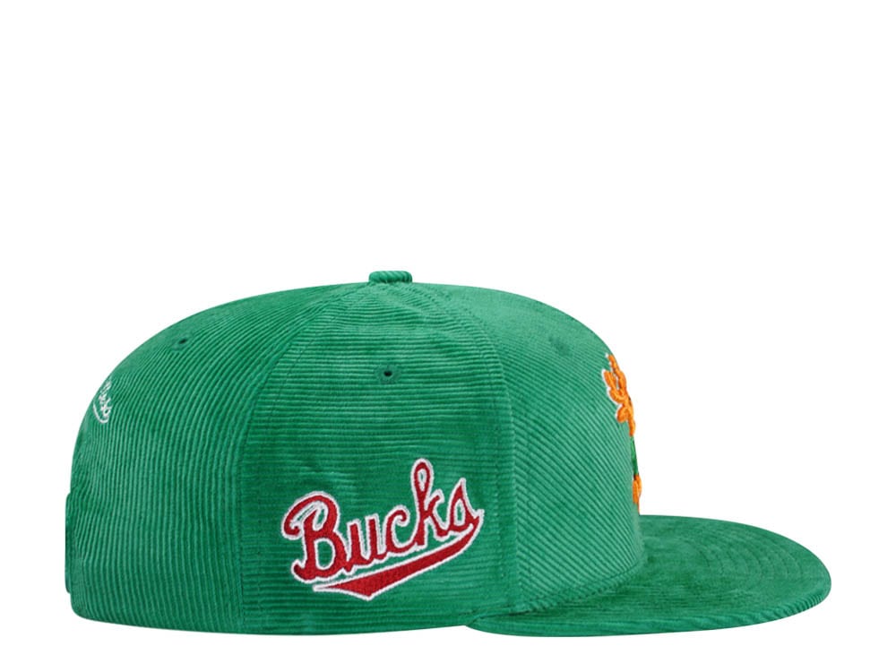 Mitchell & Ness Milwaukee Bucks Green Cord Hardwood Classic Snapback Casquette