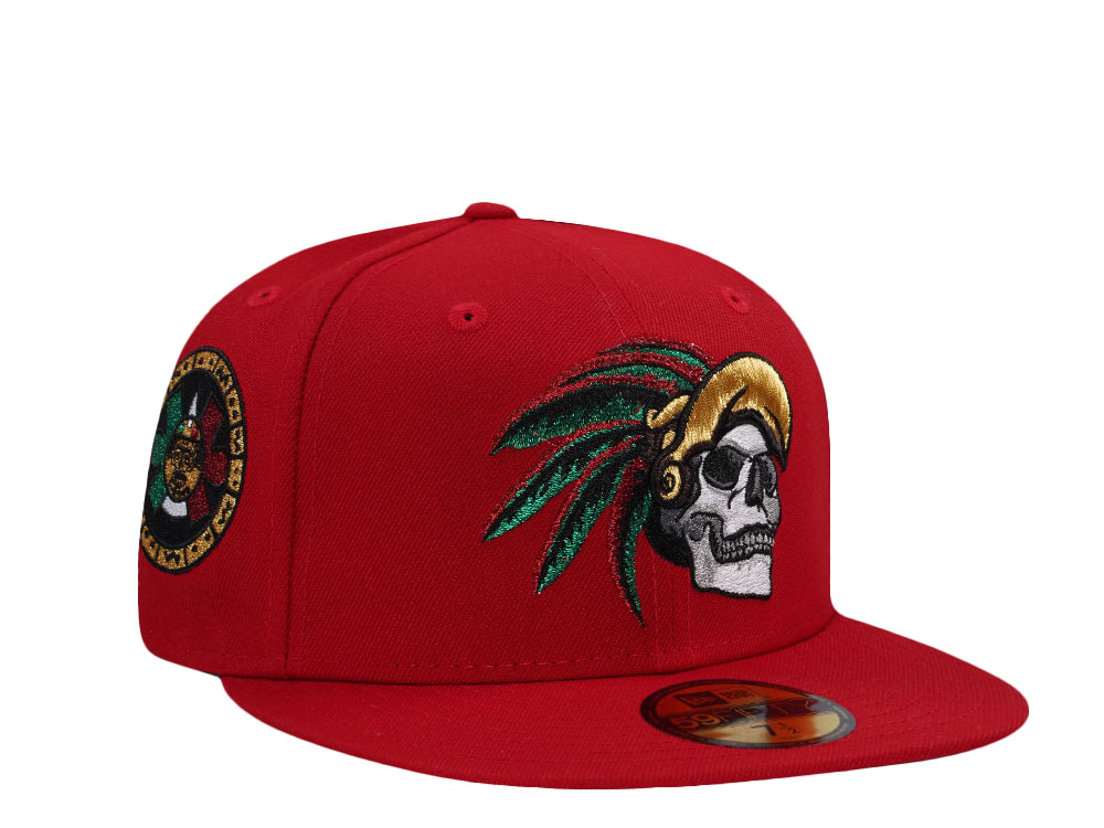New Era Mexico Aztec Skull Warrior Metallic Red Prime Edition 59Fifty Fitted Casquette