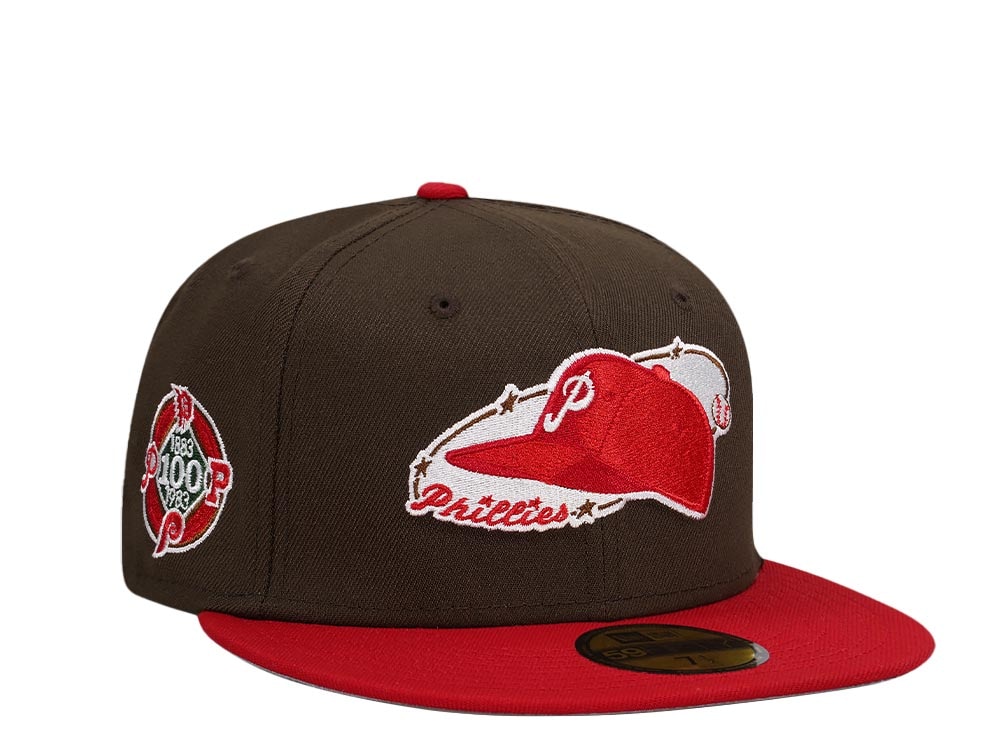 New Era Philadelphia Phillies 100th Anniversary Chocolate Red Two Tone Edition 59Fifty Fitted Casquette